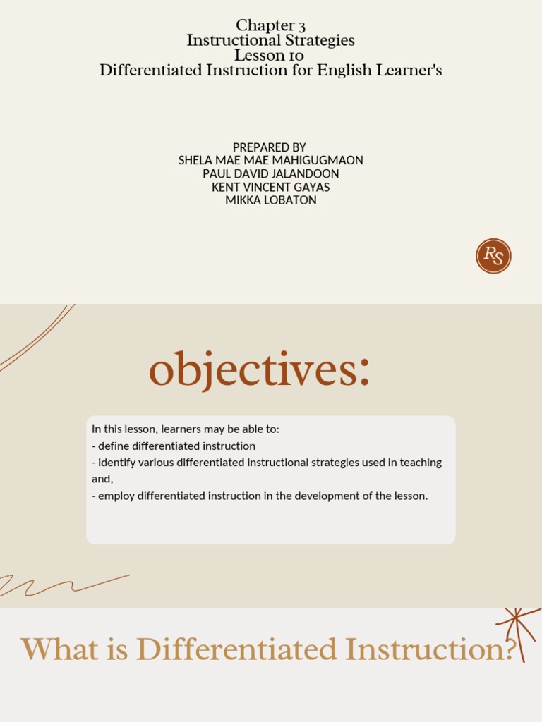 readiness, interests, and learning styles. As such, the teacher must be able to present clear