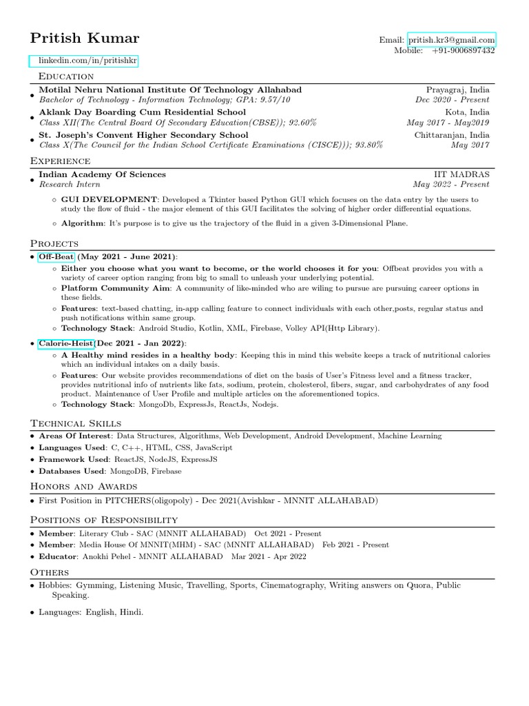 • Hobbies: Gymming, Listening Music, Travelling, Sports, Cinematography, Writing answers on Quora, Public
