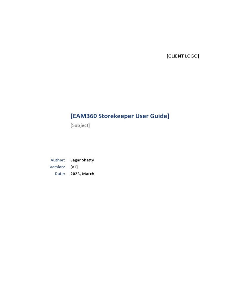 1.2.1 EAM360 Storekeeper .......................................................................................................... 1