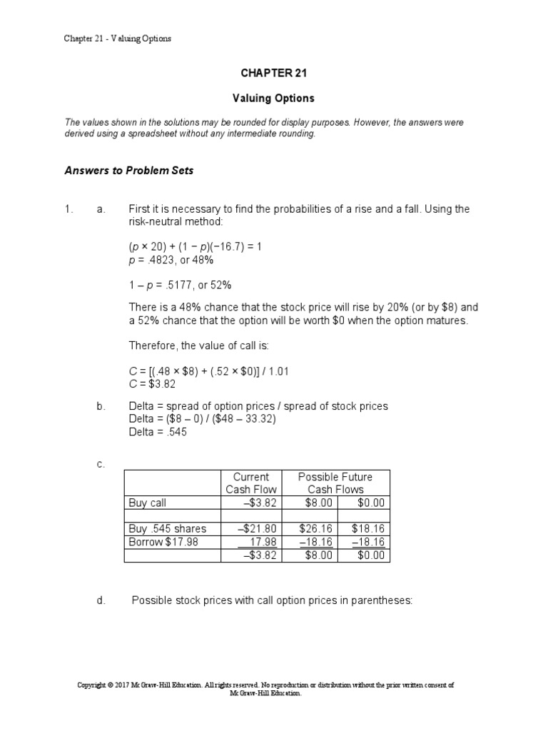 21. a. When you exercise a call, you purchase the stock for the exercise price.