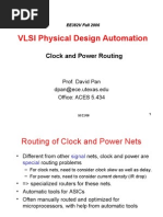 fi = (1 ) (fi1 + ci) + di + rd Domains with lower congestion will have a lower rank, rd, thus promoting routing in less congested domains first. The Pathfinder The pathfinder algorithm is based on the maze router, but speeds up the algorithm by routing every connection on a free obstacle environment and allowing routing resources to be overused. After a single iteration of the algorithm, all nets are routed once as if they were the only connection to be routed; and the cost of using every resource is calculated according to its demand. The cost function implemented by the pathfinder is [10]: fi = (1 + hn*hfac) (1 + pn*pfac) + bn,n+1 where bn,n+1 is the penalty of bending the wire, pn is the cost of using a specific wire, hn is the history that keeps track of the usage of the wire during previous iterations; and, hfac and pfac are the respective weighting factors. Subsequent iterations rip up and re-route all nets, and the process goes on until no overuse of routing resources exist. This process of ripping out and rerouting every net allows the pathfinder algorithm to minimize the net ordering problem of the maze routing. IV. THE STATE OF THE ART IN ROUTING