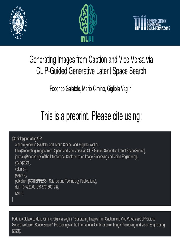 Federico Galatolo, Mario Cimino, Gigliola Vaglini. "Generating Images from Caption and Vice Versa via CLIP-Guided