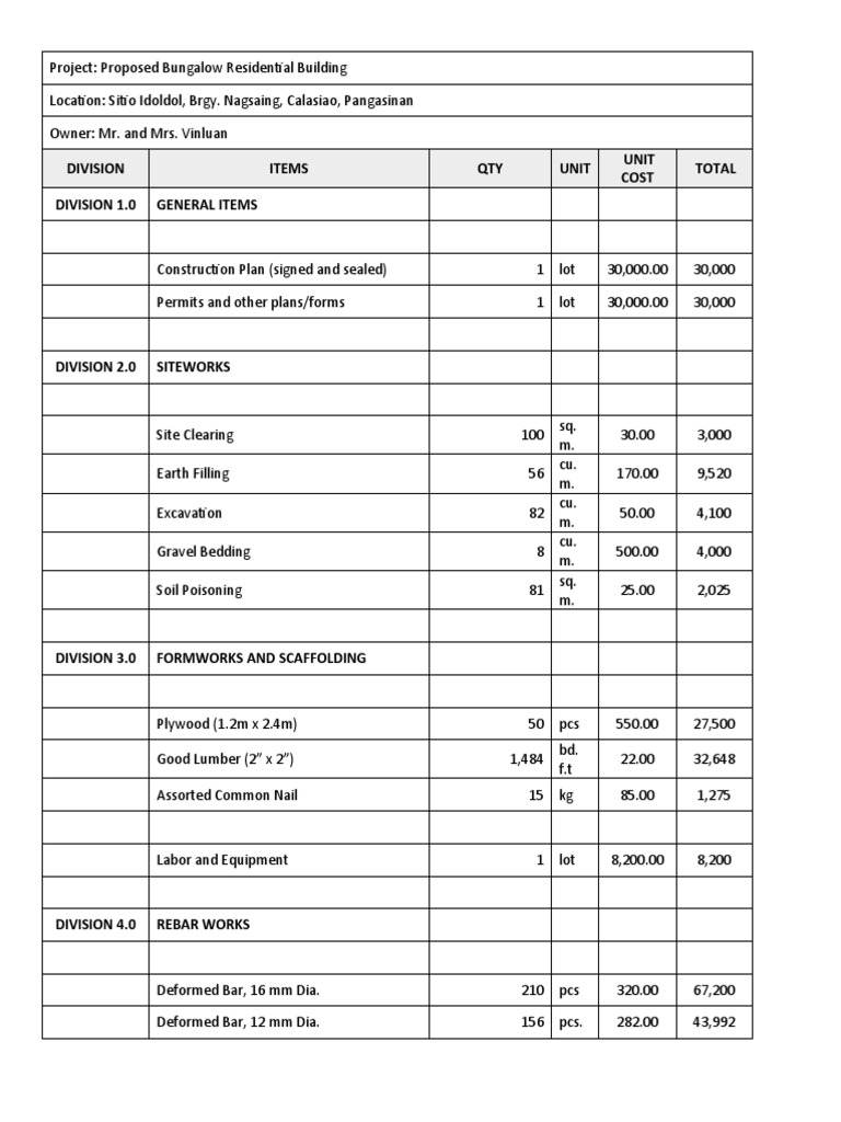 Construction Plan (signed and sealed) 1 lot 30,000.00 30,000