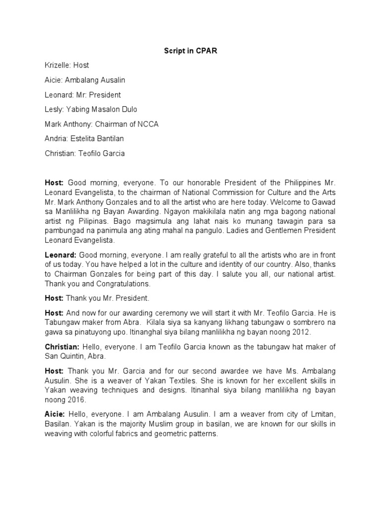 Host: Good morning, everyone. To our honorable President of the Philippines Mr.