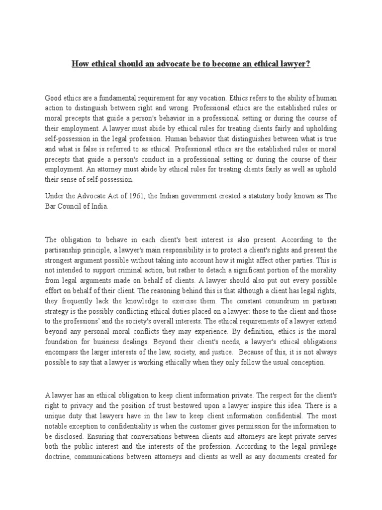 How ethical should an advocate be to become an ethical lawyer?