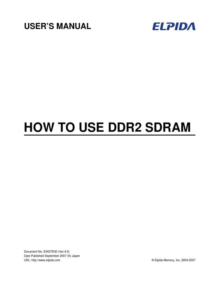 Document No. E0437E40 (Ver.4.0) Date Published September 2007 (K) Japan URL: http://www.elpida.com Elpida Memory, Inc. 2004-2007