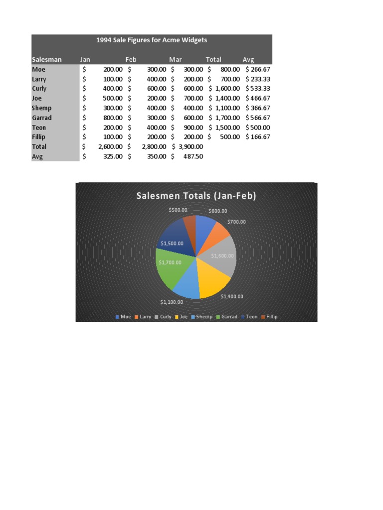 Salesman Jan Feb Mar Total Avg
