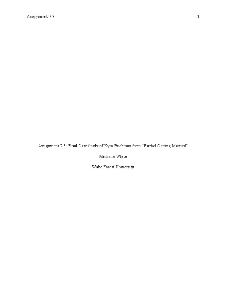 Assignment 7.3: Final Case Study of Kym Buchman from “Rachel Getting Married”
