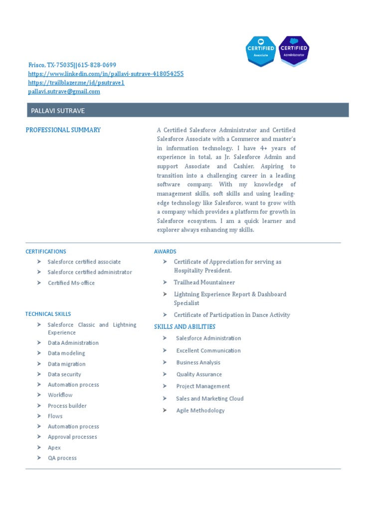 PROFESSIONAL SUMMARY A Certified Salesforce Administrator and Certified