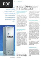 Digital video broadcasting of TV signals can be done over three different mediums viz., terrestrial, cable, and satellite. TV signals use DVB-C as the standard for transmission over the cable, DVB-T for terrestrial transmission; DVB-S for the Satellite transmission. The compression of TV signal can be done by standard MPEG-2 compression in all cases. But the modulation scheme used in each case is different. Modulation schemes used in the transmission are specified in the below table. TABLE: 1 DVB Transmission Modulation Schemes Standard Modulation DVB S QAM(Quadrature Amplitude modulation ) and QPSK (Quadrature Phase shift keying) DVB C QAM(Quadrature Amplitude modulation ) and QPSK (Quadrature Phase shift keying) DVB- T OFDM (Orthogonal Frequency Division Multiplexing)