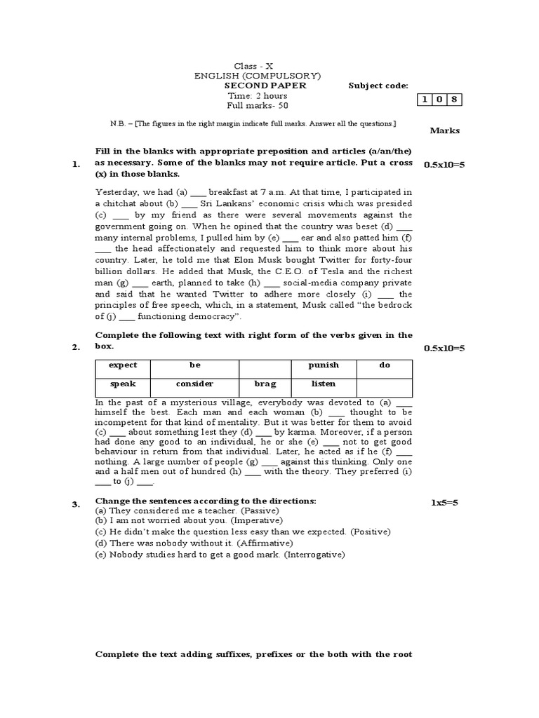 1. as necessary. Some of the blanks may not require article. Put a cross 0.5x10=5
