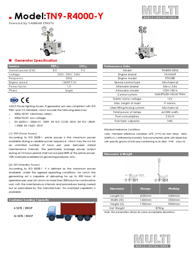 MULTI Power lighting towers & generator sets are compliant with ISO