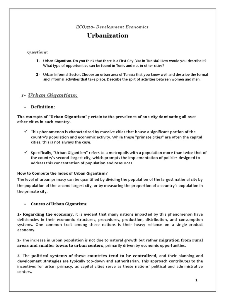 2- Urban Informal Sector. Choose an urban area of Tunisia that you know well and describe the formal