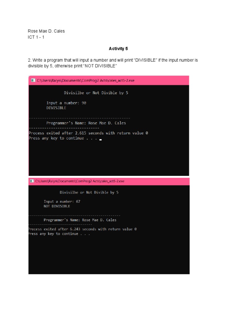 cout<<"\n\tProgrammer's Name: Rose Mae D. Cales";