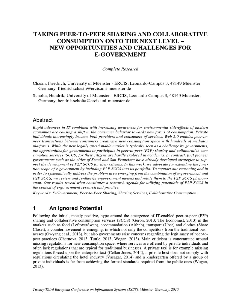 to-peer sharing and collaborative consumption services into the scope of e-government.