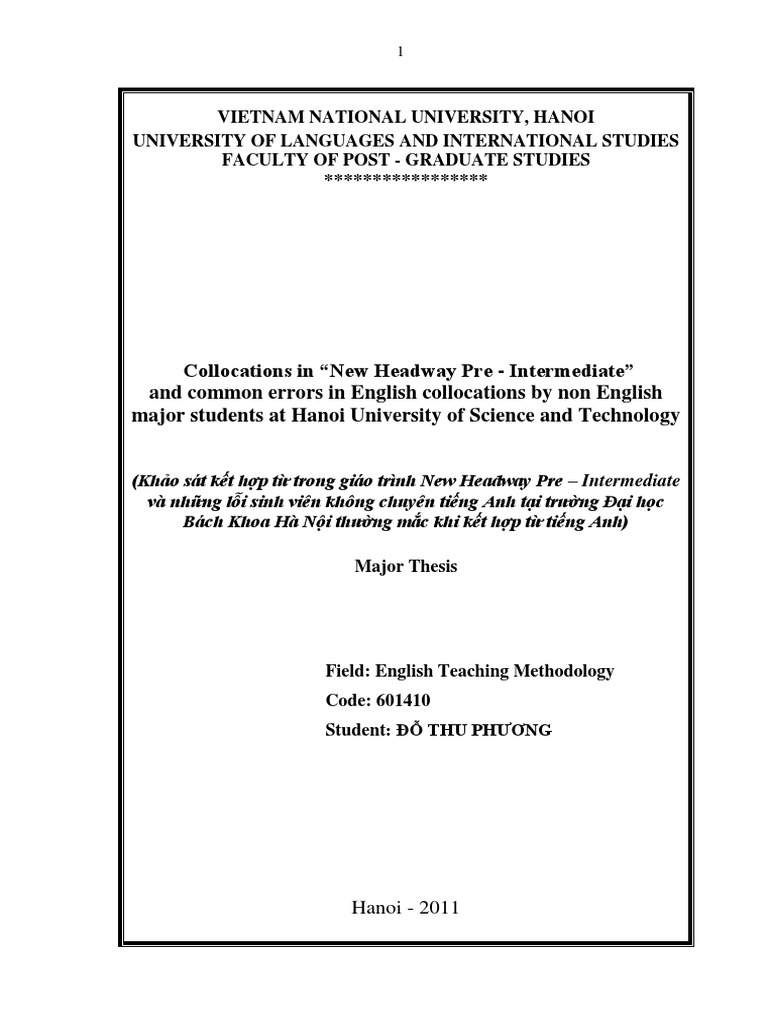 Vietnam National University, Hanoi University of Languages and International Studies Faculty of Post - Graduate Studies