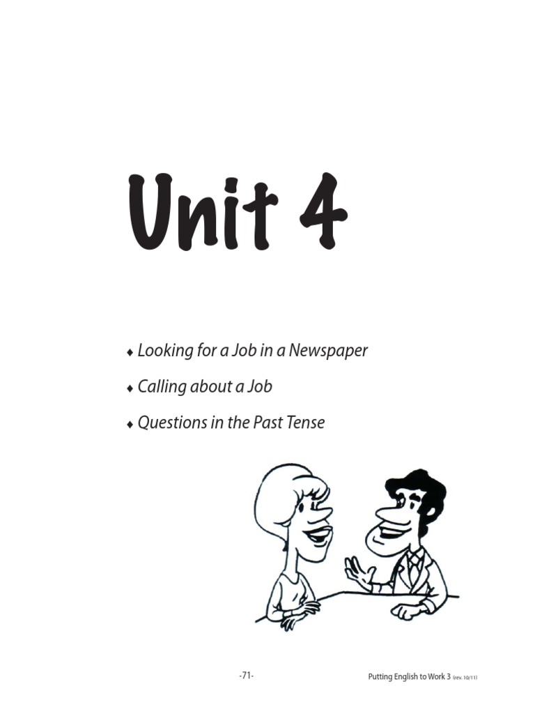 Putting English to Work 3 (rev. 10/11) -72- Unit 4