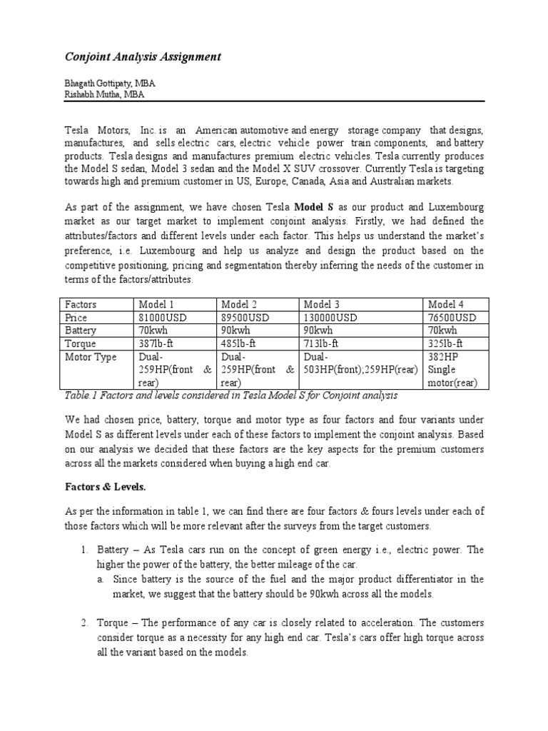 Model S as different levels under each of these factors to implement the conjoint analysis. Based