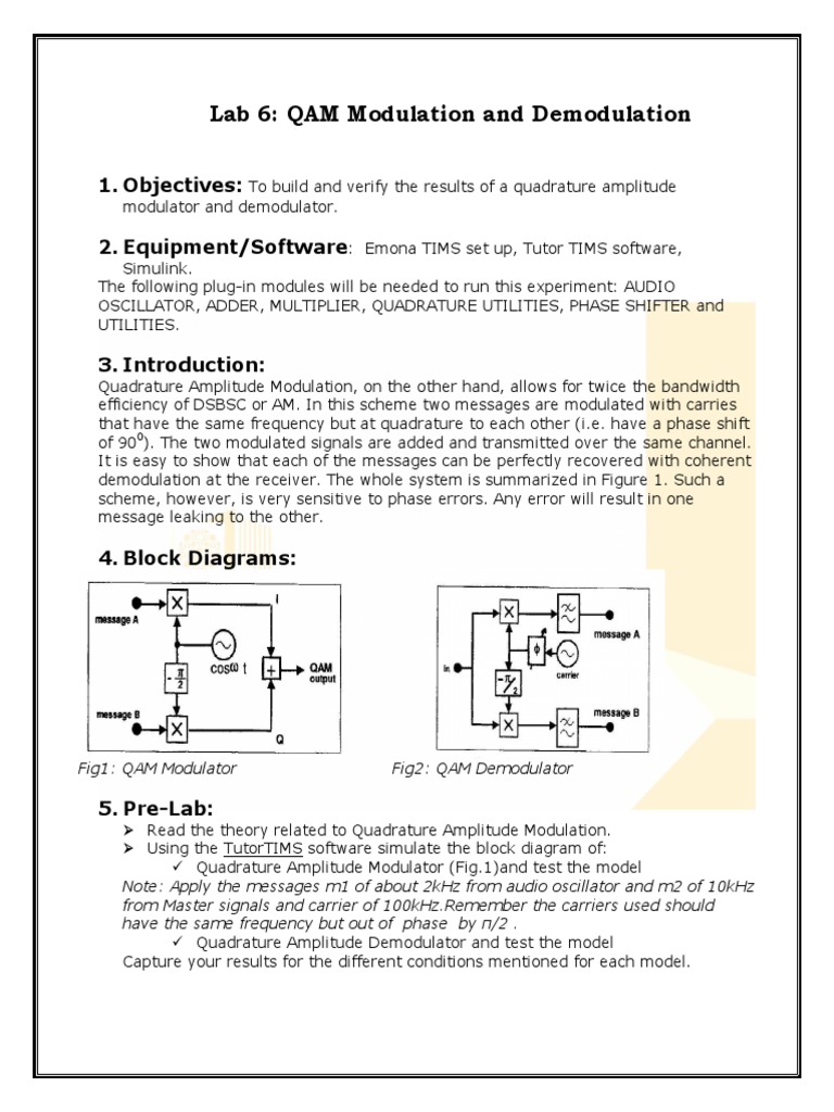 1. Objectives: To build and verify the results of a quadrature amplitude