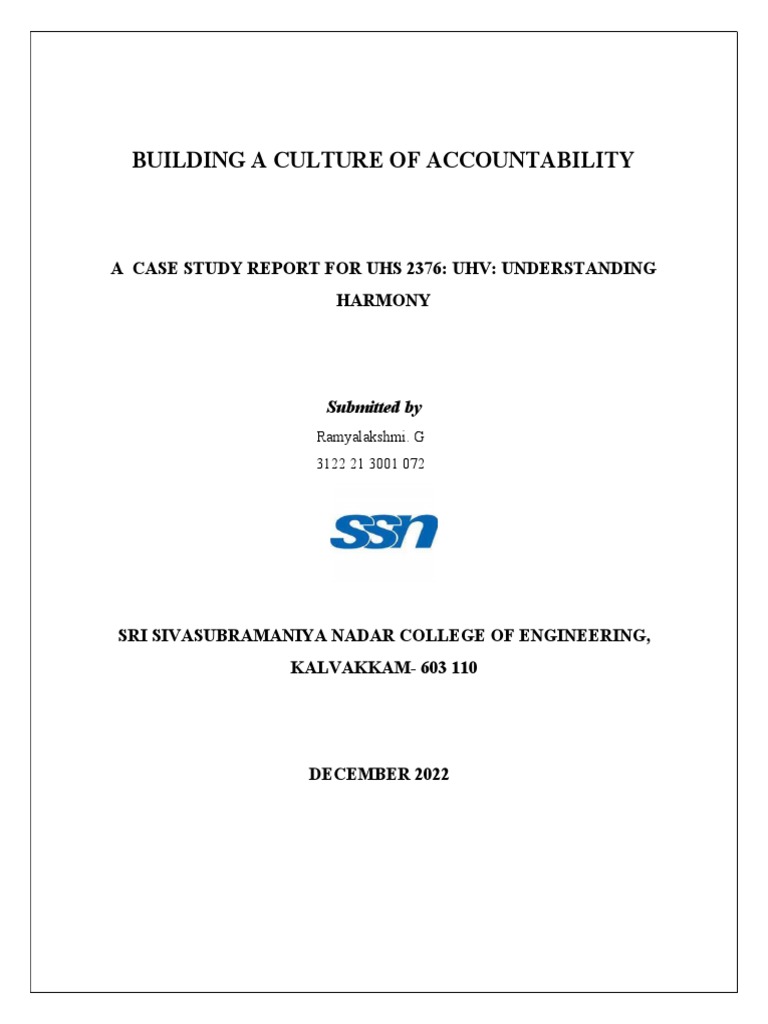 A CASE STUDY REPORT FOR UHS 2376: UHV: UNDERSTANDING