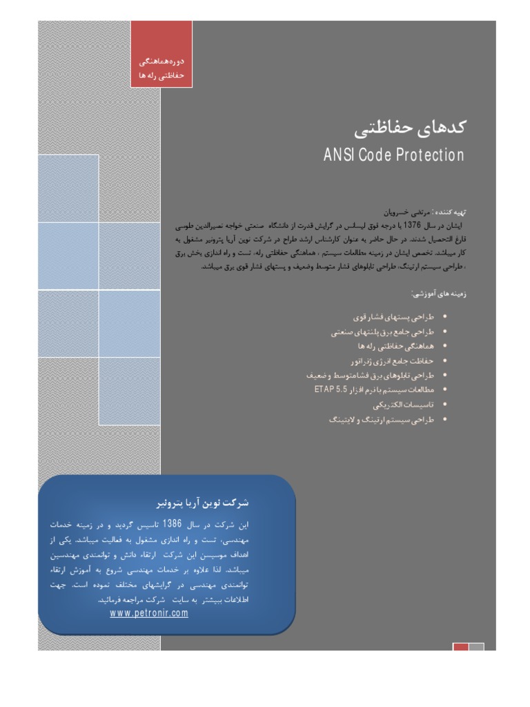 در زﻣﯿﻨﮫ ﺧﺪﻣﺎت ﻣﮭﻨﺪﺳﯽ ،ﺗﺴﺖ و راه اﻧﺪازی در ANSI Code Protection