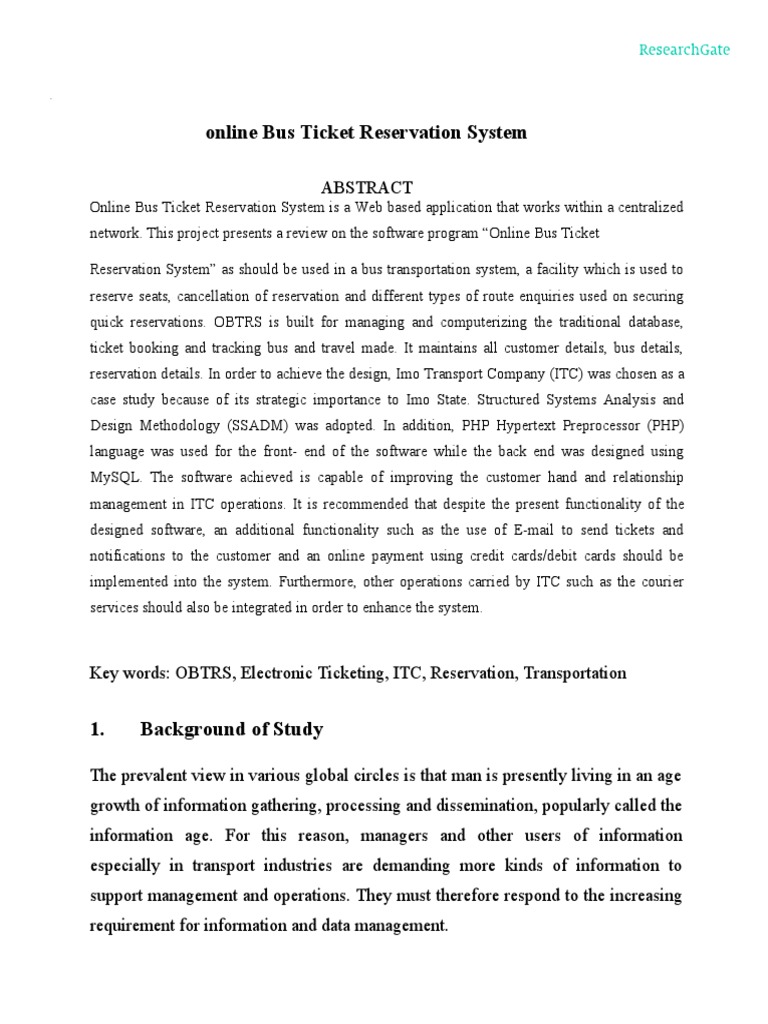 According to Kevin (2012) Web-based Bus Reservation and Ticketing System is a
