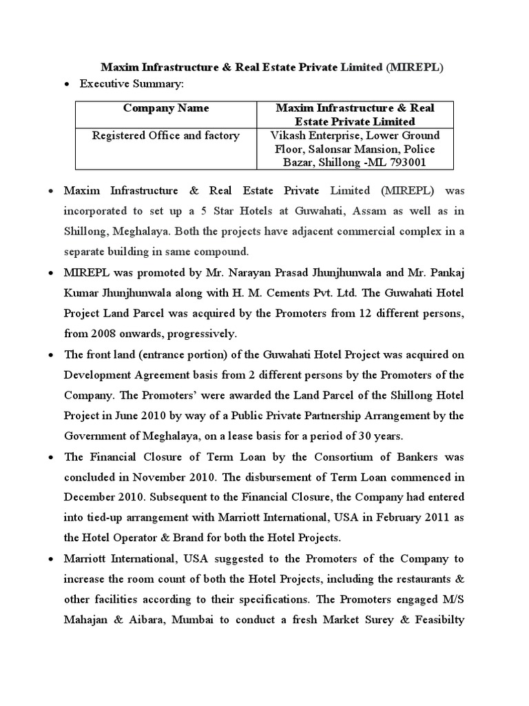 Maxim Infrastructure & Real Estate Private Limited (MIREPL) was