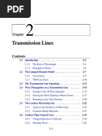 2i 2v +C 2 = 0 t z t The two mixed derivatives are equal under the usual regularity conditions for i(z,t) and we obtain 2v 2v LC 2 = 0 z 2 t This equation is known as wave equation (in one dimension) because its solutions (obtained by dAlembert in 1747) are waves propagating along the line with speed vph = 1/ LC. Obviously one of the two (1.9 ) must be associated to (1.10), in order to obtain the current i(z,t). Recall in fact that on a transmission line, voltage and current are inextricably linked. Observe that also the current i(z,t) obeys a wave equation identical to (1.10). To obtain it, dierentiate the rst of (1.9) with respect to t and the second with respect to z. The wave equation for an innitely long ideal transmission line, with the initial conditions v(z,0) = v0 (z), i(z,0) = i0 (z) (1.10)