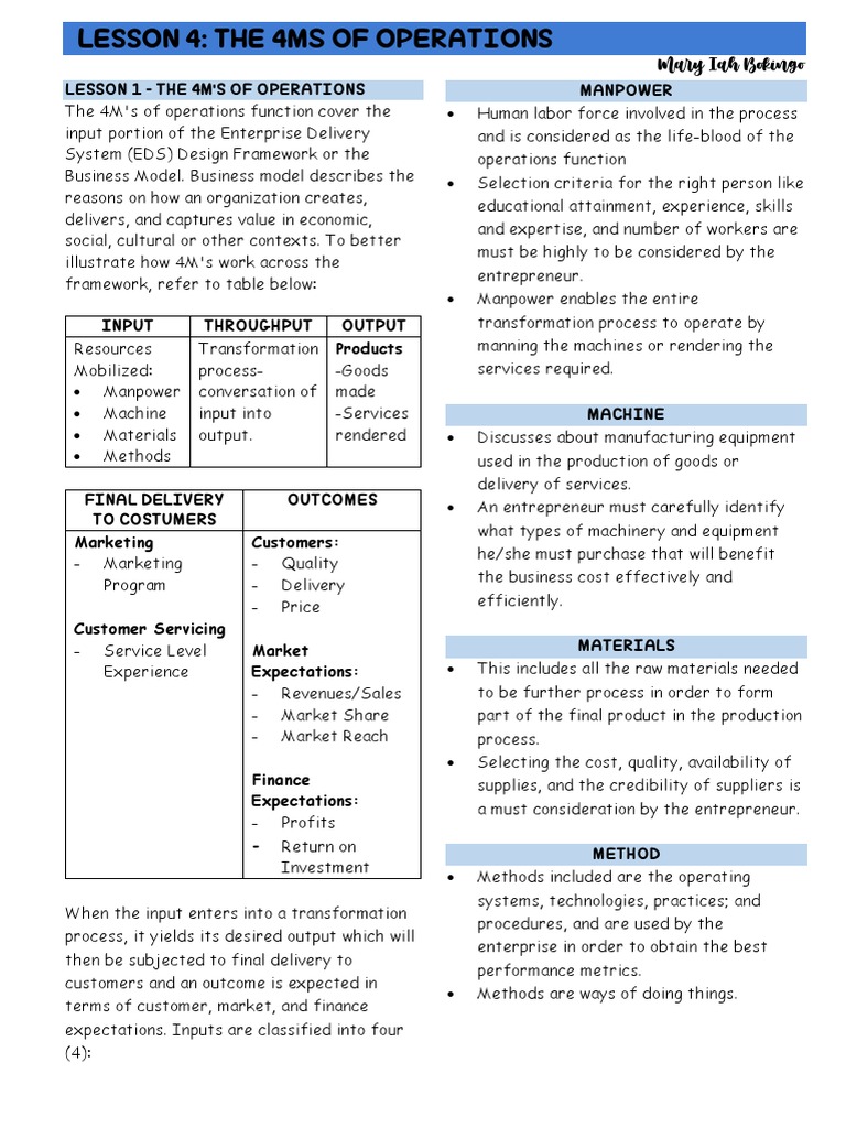 LESSON 1 - THE 4M'S OF OPERATIONS MANPOWER