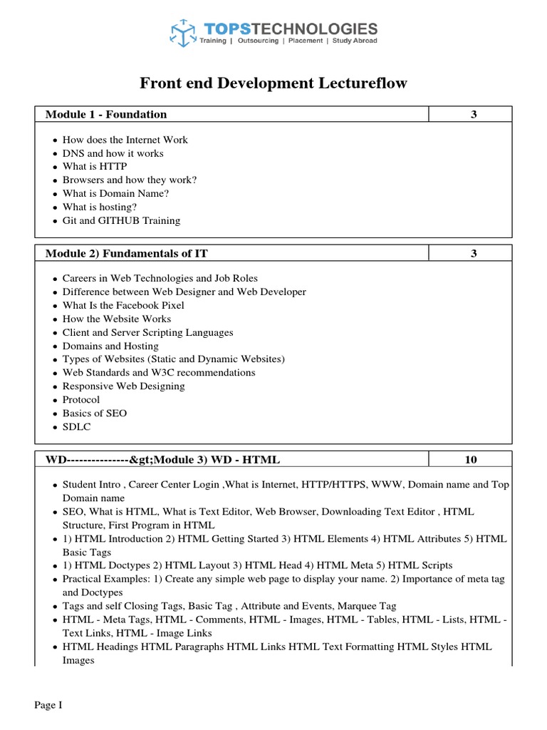 1) HTML Introduction 2) HTML Getting Started 3) HTML Elements 4) HTML Attributes 5) HTML