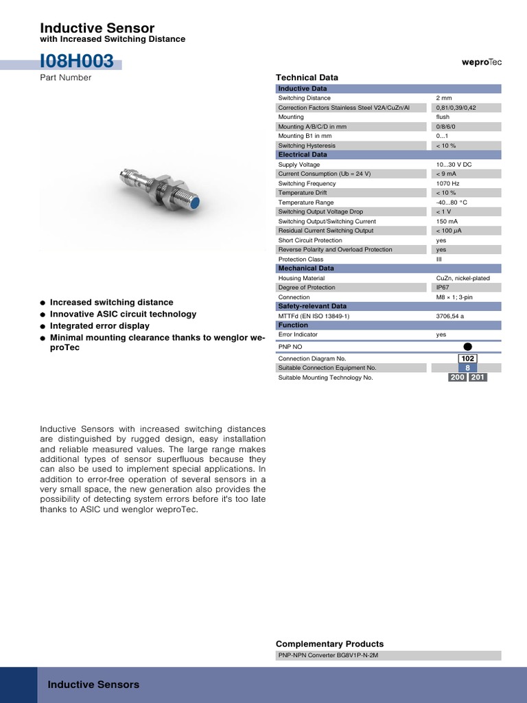 Innovative ASIC circuit technology MTTFd (EN ISO 13849-1) 3706,54 a