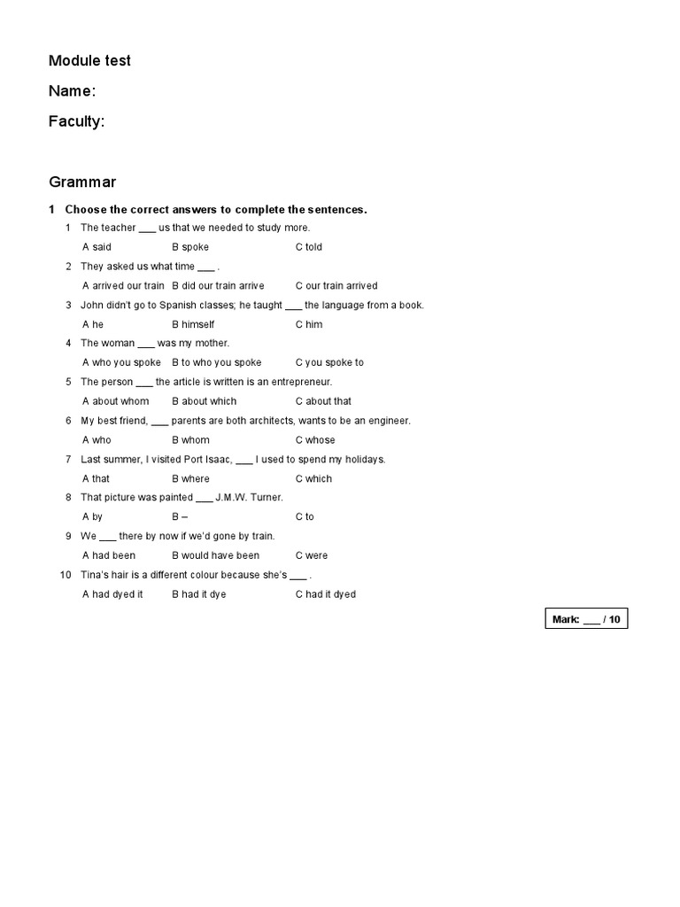 7 Amy told her parents that she __________________ (do) her homework, but there weren’t any books on her desk.