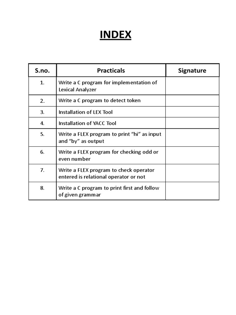 S.no. Practicals Signature