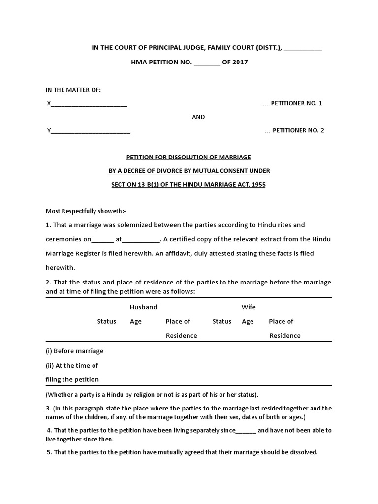 that this Hon’ble Court may be pleased to grant a decree of divorce on mutual consent thereby