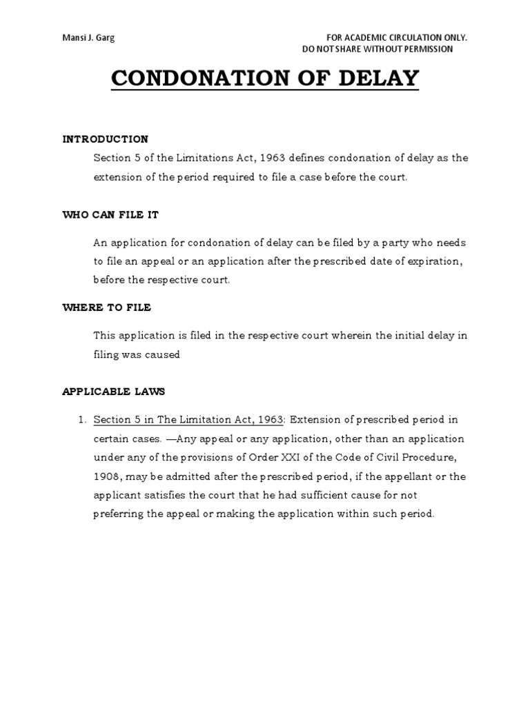 1. Section 5 in The Limitation Act, 1963: Extension of prescribed period in