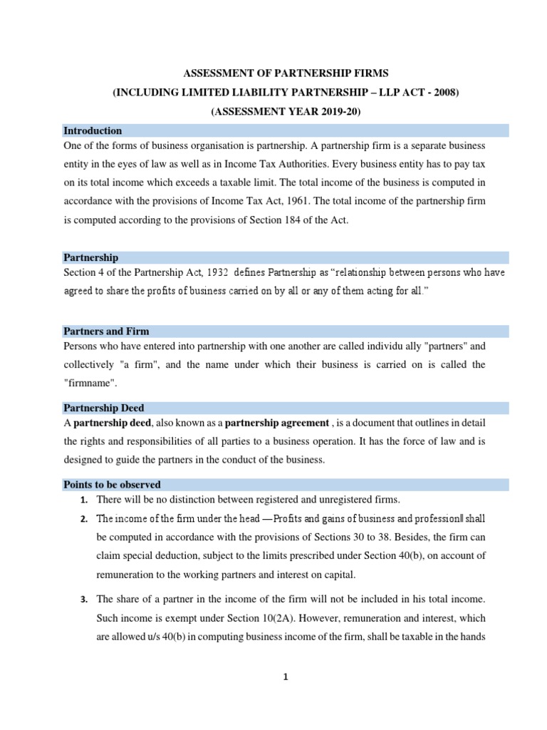 ASSESSMENT OF PARTNERSHIP FIRMS