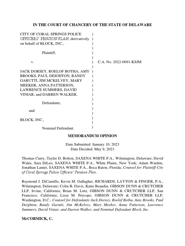 The plaintiff, a stockholder of Block, Inc., filed this derivative suit challenging