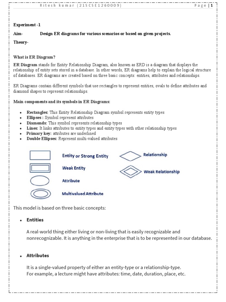 Aim- Design ER diagrams for various scenarios or based on given projects.