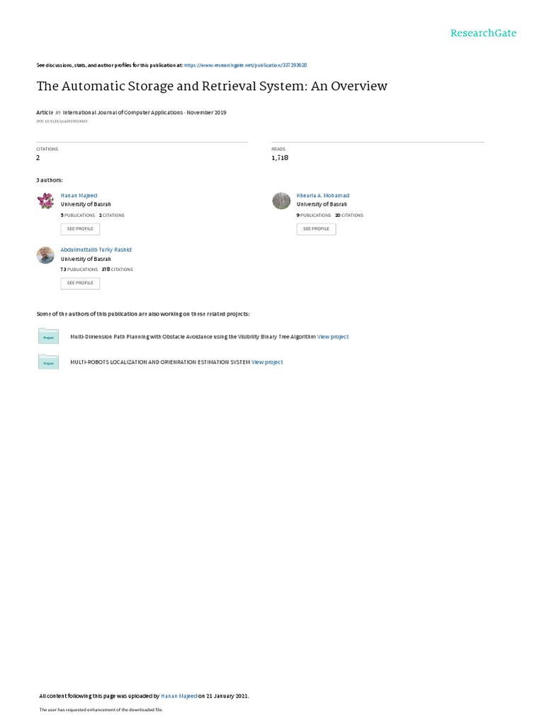 The Automatic Storage and Retrieval System: An Overview: International Journal of Computer Applications November 2019