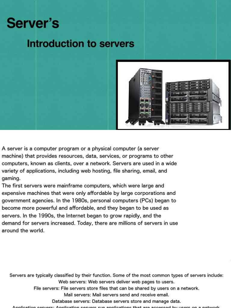 computers, known as clients, over a network. Servers are used in a wide