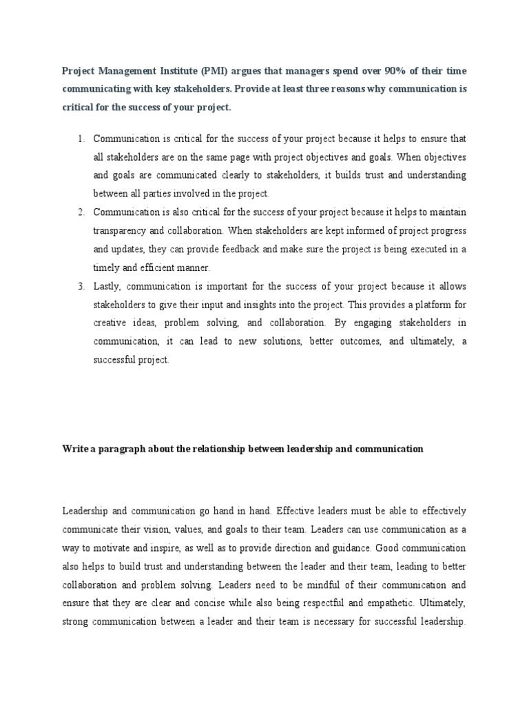 Project Management Institute (PMI) argues that managers spend over 90% of their time