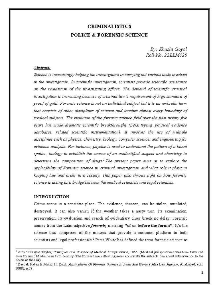 proof of guilt. Forensic science is not an individual subject but it is an umbrella term