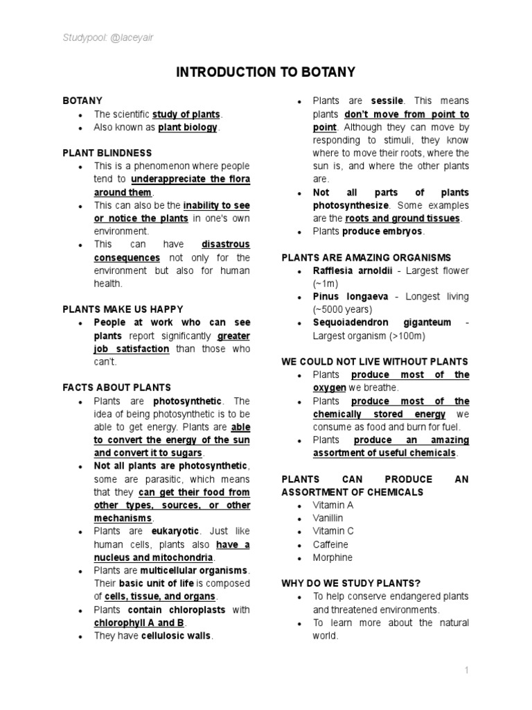 ● Chemical interactions within plants ● Biology and evolution of plants in