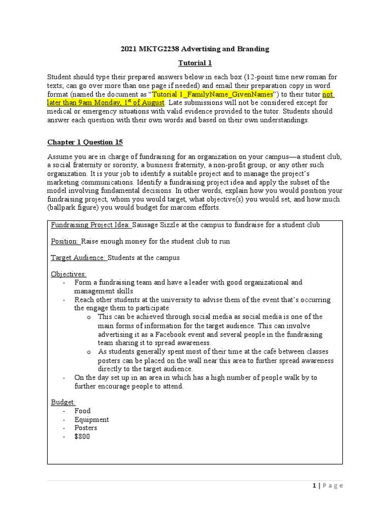 format (named the document as “Tutorial 1_FamilyName_GivenNames”) to their tutor not