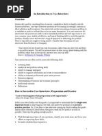 Reprint Guidelines Free Newsletter Subscription Main Articles Page If you're a business-school student -- at the undergraduate or MBA level -- chances are you already know something about how to handle a very specialized kind of job interview -- the case interview. Many business-school courses revolve around case analysis, and many business students have become pros at picking business cases apart. Still, the thought of doing so within a tight time-frame (usually 15-20 minutes) in the already highly pressured situation of a job interview can be daunting -if not downright terrifying. The case interview is employed primarily by management-consulting firms, as well as investmentbanking companies, and is increasingly being used by other types of corporations as at least part of the job-interviewing process. Some firms use case interviews only for MBA-level job candidates, while others use them for undergraduates, as well. Business students who are not totally comfortable with case analysis and liberal-arts students with little or no exposure to the case method can take comfort in knowing that a vast collection of resources is available, both on and off the Internet, to tell you everything you need to know to succeed in a case interview. We'd be foolish to try to reinvent any of that great resource material, so the purpose of this article is to give you a brief overview of the case-interview process. We then provide a sampling of excellent resources to help you delve further into this tricky interviewing mode. Perhaps most helpful are the resources provided by companies who actually conduct case interviews. There's nothing like going to the source when you want to know what your interview will be like. To invoke a definition of the case interview offered by MIT's Careers Handbook, it's an interview in which "you are introduced to a business dilemma facing a particular company. You are asked to analyze the situation, identify key business issues, and discuss how you would address the problems involved." Case interviews are designed to scrutinize the skills that are especially important in management consulting and related fields: quantitative skills, analytical skills, problem-solving ability, communications skills, creativity, flexibility, the ability to think quickly under pressure, listening skills, business acumen, keen insight, interpersonal skills, the ability to synthesize findings, professional demeanor, and powers of persuasion. Above all, the firm will be looking for someone who can do the real work at hand. Managementconsulting companies, for example, want to know that you are the kind of person who can make a good impression on clients. Describing a presentation on case interviewing given at Columbia University by representatives of McKinsey and Company, Jim Oh notes that consulting firms value case interviews because "there is no right background for consulting. Consulting requires working in unfamiliar territories, thinking on your feet, and performing in situations where you never have enough time." Experts agree on many of the fine points for approaching case interviews: Practice extensively before undergoing a case interview. Use books and Web sites in our resources section for practice cases. Some companies that use case interviews provide good