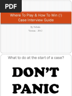 information on their own Web sites. Boston Consulting Group, for example, provides an interactive case you can work through for practice, as well as additional cases you can rehearse with friends. Vault.com, which has some of the best resources on the Internet regarding case interviewing, suggests starting out by practicing explaining something like how to change a tire. Move on to assessing a situation for friends or family members, such as which bank they should choose for a checking account. In all cases, try to avoid "um's" and other filler words. Practice summarizing in a minute or less, advises Vault.com. Boston Consulting Group notes that Harvard Business School produces numerous case studies that can be used for practice; the studies are likely available in your business-school or career-services library. Other experts suggest talking to alumni from your school or others who've been through a case interview, as well as reading business magazines and periodicals such as the Wall Street Journal to get a sense of how companies deal with the kinds of issues likely to be asked about in case interviews. Some universities offer case interview workshops. Listen carefully to the question. Paraphrase it back to the interviewer to ensure your understanding. As StudentAdvantage.com puts it in its article on case interviewing, "Listening is the most important skill a consultant has. The case isn't about you or the consultant; it's about the client." You may also want to take notes; in most cases the interviewer will allow you to do so. Vault.com suggests bringing not only a pad of paper but a pad of graph paper in case you want to create a graph as part of your conclusion. Silence -- but not too much of it -- is golden. The interviewer expects you to take a minute or so to collect your thoughts, so don't be afraid of silence. It's a nice idea, however, to ask the interviewer if it's OK to take a moment to ponder the case. And don't take too much time. Experts agree that five minutes would be excessive. Remember that rarely is there one "right" answer for analyzing a case. Your process for reaching your conclusions is equally important to the interviewer as is the conclusion itself. In fact, the interviewer wants to observe as much of that process as possible, so it's important -once you've taken the time to gather your thoughts -- to "think out loud" as you're working through the case. Although there is probably not one right answer, the McKinsey representative who spoke at Columbia warns against "wrong approaches," including "ignoring or forgetting important facts, defending impossible ideas, and force-fitting the wrong structure onto a problem." Don't be afraid to ask questions. The case interview is meant to be interactive, with lots of back and forth between you and the interviewer. Questions are expected, especially because the information provided about the case will likely be incomplete. The interviewer will be looking at your resourcefulness in collecting information. Make sure you ask your questions in a logical -- not random -- progression. Vault.com notes that it's helpful to adopt "the persona of an actual consultant trying to learn about the assignment" and warns that failing to ask questions is a fatal error in the case interview. Be sure, also, to listen carefully to the answers to your questions. And don't get rattled if the interviewer wants to know why you want the information you're asking for. It's all part of understanding your thought process. Construct a logical framework with which to explore the critical issues of the case. Many of the principles you learned in business school can serve as a framework. Examples include Porter's Five Forces, the SWOT analysis, Value Chain Analysis, and the Four P's of marketing. If you have some business experience, you can can also draw on applicable situations you've encountered. Make sure your conclusion is grounded in action, not just theory. Be able to explain and defend your reasoning. Prioritize the issues and objectives. Don't get bogged down trying to deal with every aspect of the case. As you ask questions, you should be able to pick up clues as to which issues are most important. Some of those clues might be meant to lead you back on track if you've gone astray, so be sure to listen carefully. If direction is not forthcoming, don't be afraid to take control of the conversation, advises Vault.com, to get to the meat of the case. Don't be afraid to think outside the box. Creativity and brainstorming may be just what the interviewer is looking for.