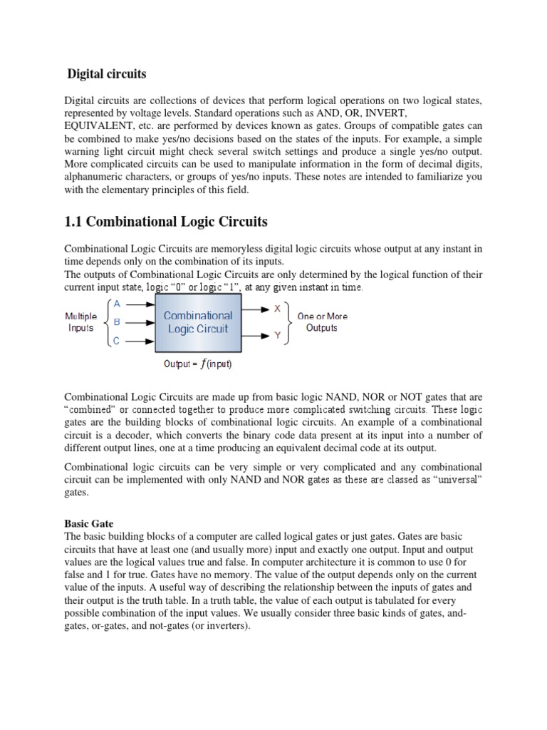 circuits that have at least one (and usually more) input and exactly one output. Input and output