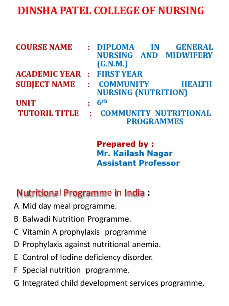 TUTORIL TITLE : COMMUNITY NUTRITIONAL