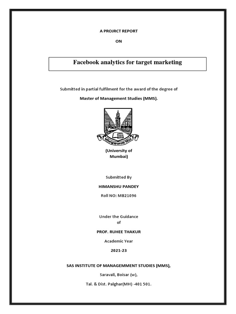 I hereby declare that Project Report submitted by me on the topic “Facebook