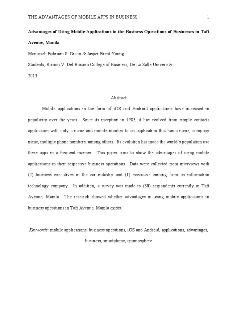Avenue, Manila. The research showed whether advantages in using mobile applications in